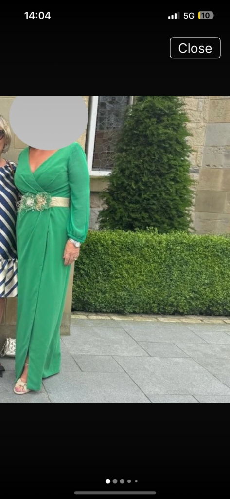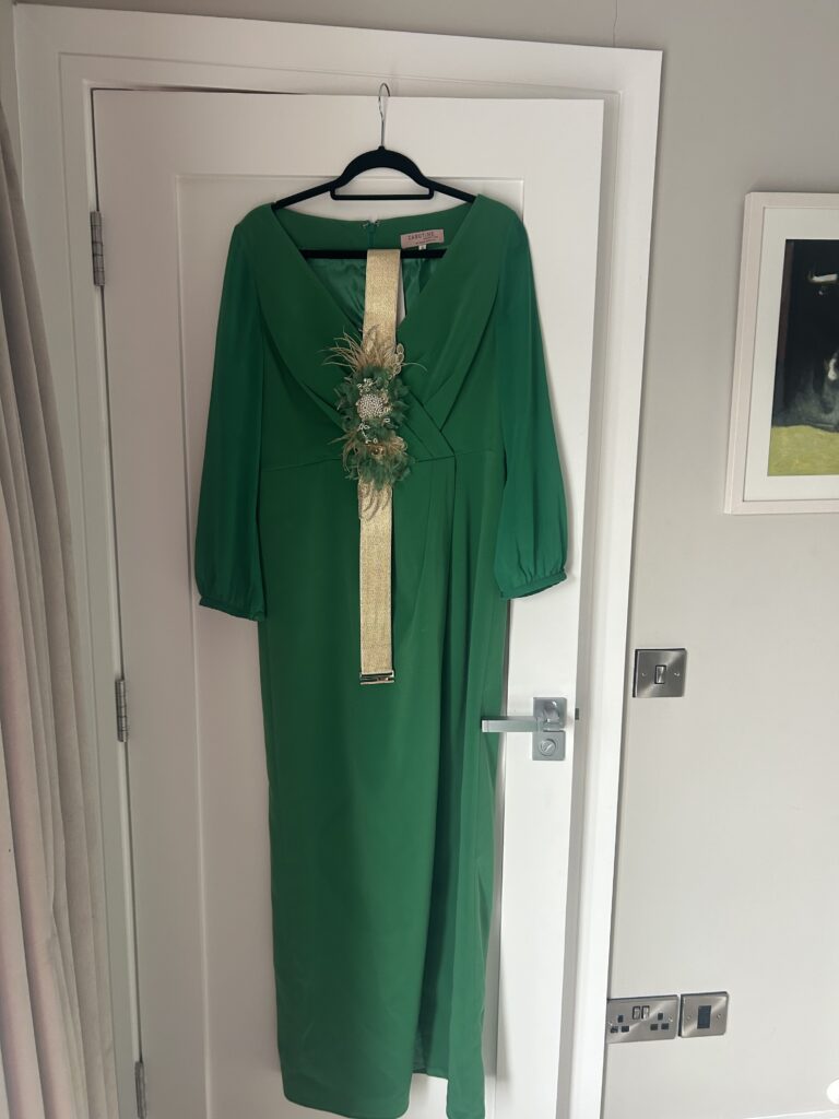 Beautiful emerald Floor length wrap dress , ideal for black tie / mother of bride / groom , very flattering on , crepe dress with chiffon sleeves , bought in Spain for my sons wedding